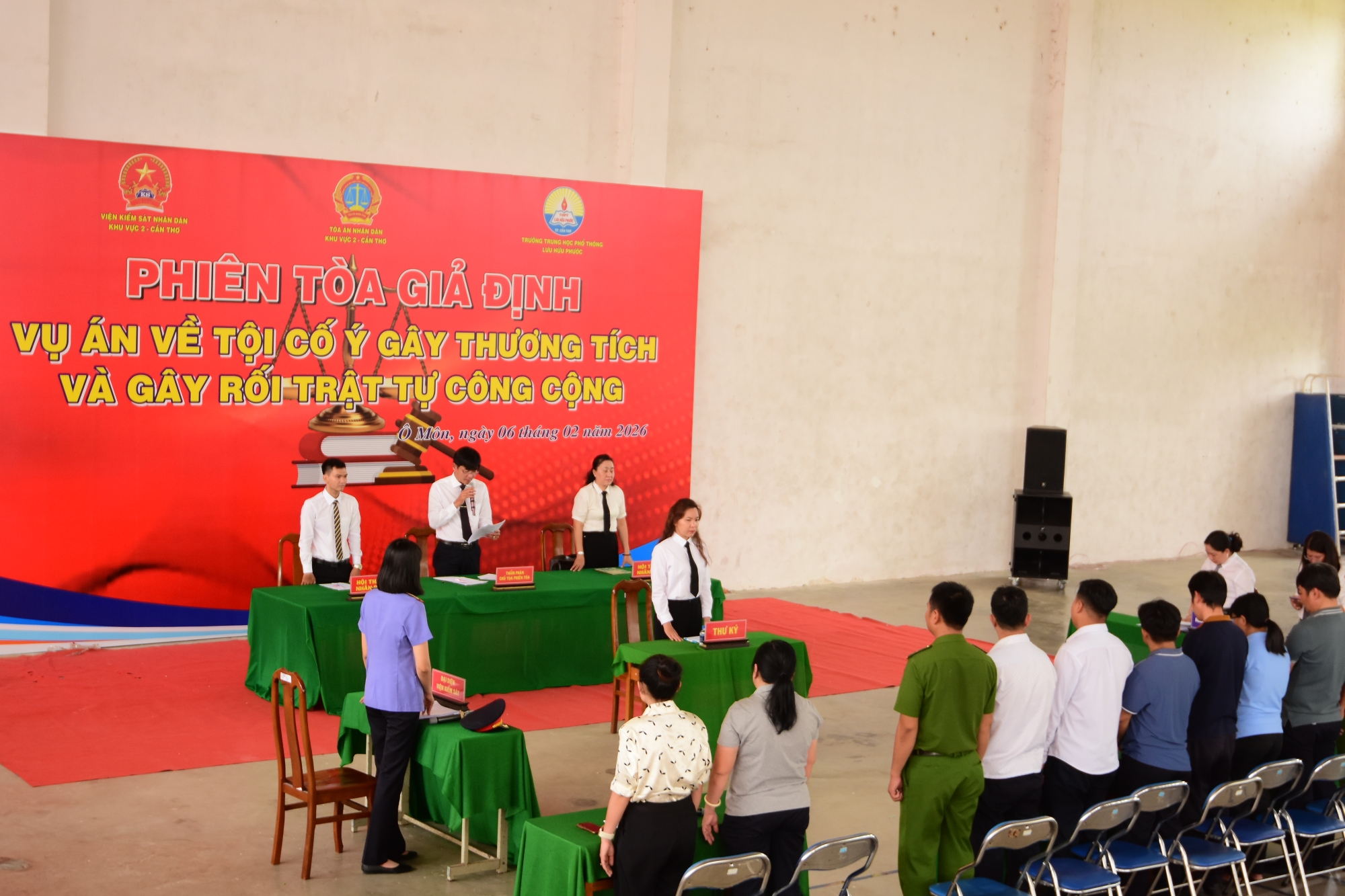 Phiên tòa được xây dựng, sắp xếp công phu, bám sát trình tự, thủ tục tố tụng hình sự theo quy định của pháp luật, từ phần khai mạc, xét hỏi, tranh luận đến nghị án và tuyên án. Toàn bộ các vai diễn trong phiên tòa giả định đều do những cán bộ có trình độ chuyên môn, nghiệp vụ cao của ngành Tòa án, Viện kiểm sát cùng với các luật sư đến từ những văn phòng luật, công ty luật uy tín, hàng đầu tại thành phố Cần Thơ trực tiếp đảm nhiệm. Điều này đã tạo nên không khí phiên tòa nghiêm túc, sinh động, chân thực, giúp người tham dự – đặc biệt là các em học sinh – dễ dàng hình dung, tiếp cận và ghi nhớ các quy định pháp luật một cách trực quan, sinh động.