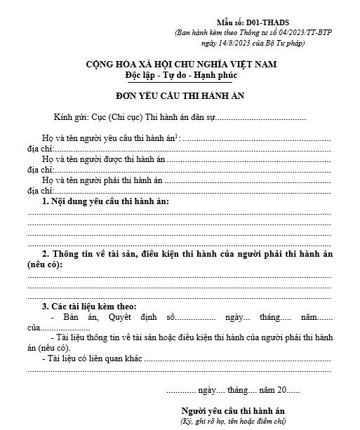 “Yêu cầu thi hành án” là thủ tục pháp lý cho phép đương sự theo bản án, quyết định đã có hiệu lực pháp luật gửi Cơ quan thi hành án dân sự để đề nghị tổ chức thi hành án. Nói cách khác, yêu cầu thi hành án là một đề nghị, yêu cầu Cơ quan thi hành án án dân sự bắt đầu một loạt các hoạt động, thủ tục trong quá trình thi hành án nhằm mục đích thực thi bản án, quyết định của Tòa án. Do đó, yêu cầu thi hành án là một bước quan trọng mà đương sự, người dân cần phải nắm để tự bảo đảm quyền và lợi ích hợp pháp của bản thân. Chỉ khi có yêu cầu thi hành án hợp pháp thì cơ quan thi hành án mới vào cuộc tổ chức các biện pháp cưỡng chế như: kê biên tài sản, thu giữ tài khoản, cưỡng chế cưỡng chế… để thực thi phán quyết.